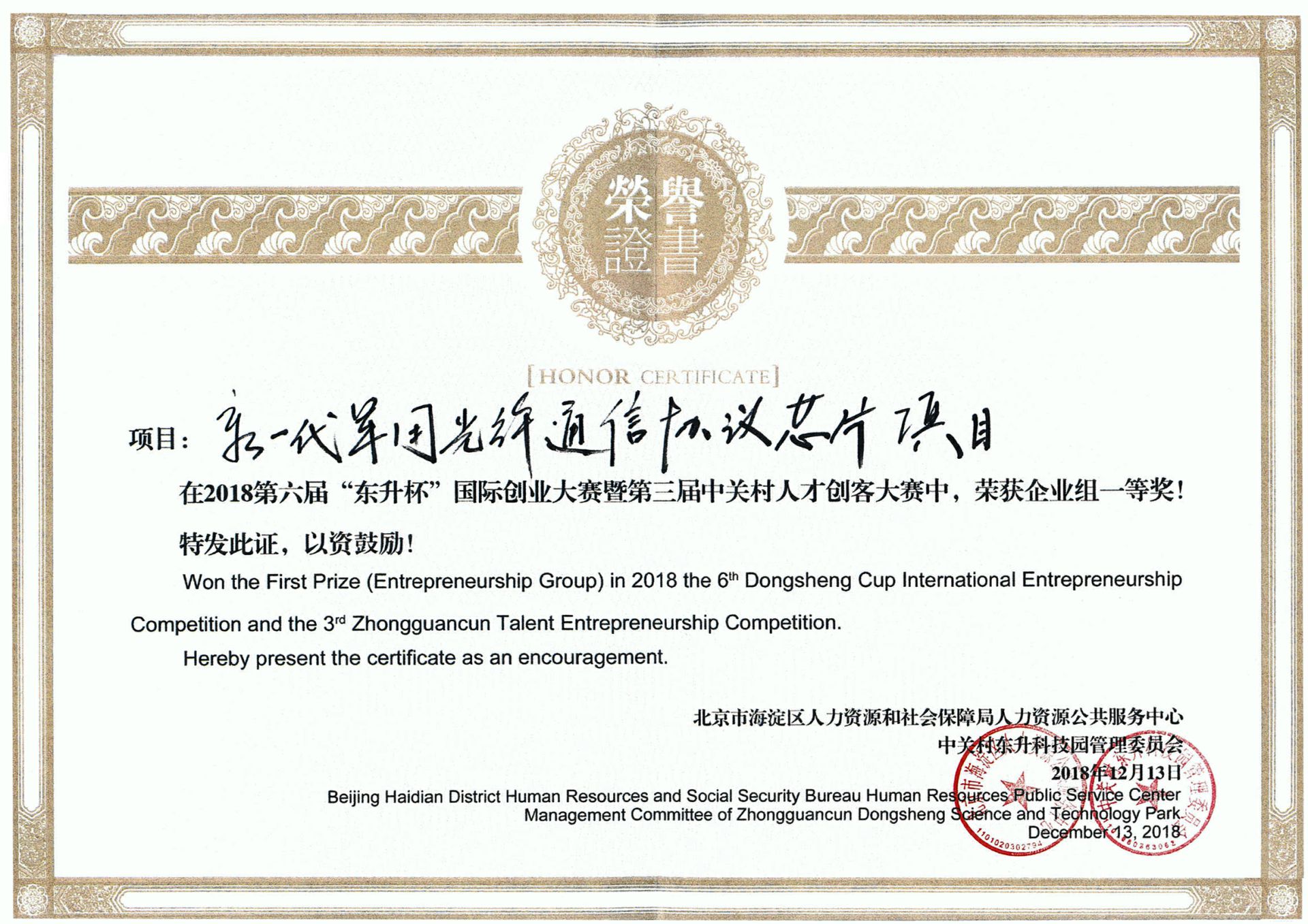 第六届东升杯国际创业大赛暨第三届中关村人才创客大赛企业组一等奖