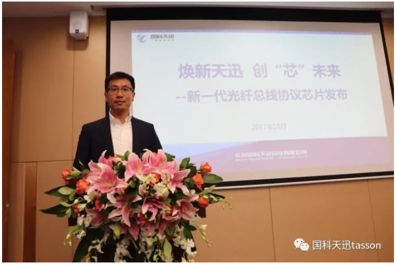 国科海口明辉家电维修服务有限公司市场部经理徐俊亭为大家讲解并发布国内高可靠光纤通信领域的首款总线协议芯片产品。